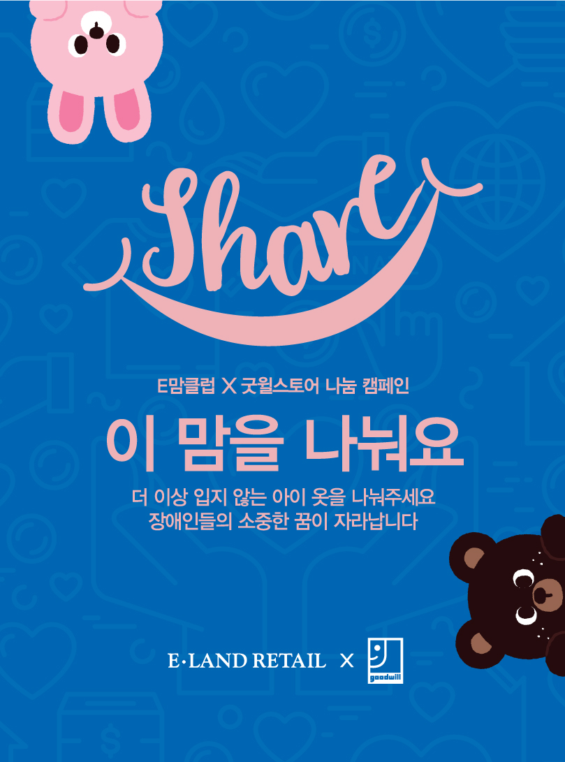 이랜드리테일 마케팅실 관계자는 “아동 고객을 위해 만들어진 이랜드리테일 멤버십(E맘클럽) 고객들이 어떤 고민이 있는지 많은 분들을 인터뷰 해 보니, 하루가 다르게 성장하는 아이들의 옷, 가방, 장난감 등은 처치하기도 곤란하다는 의견이 있었다”라며, “고객들이 직접 나눔에 동참하면서 장애우들의 자립을 돕고 쇼핑 지원금도 받아 아동용품을 구매할 수 있는 좋은 기회라고 생각해 계획했다”고 말했다.