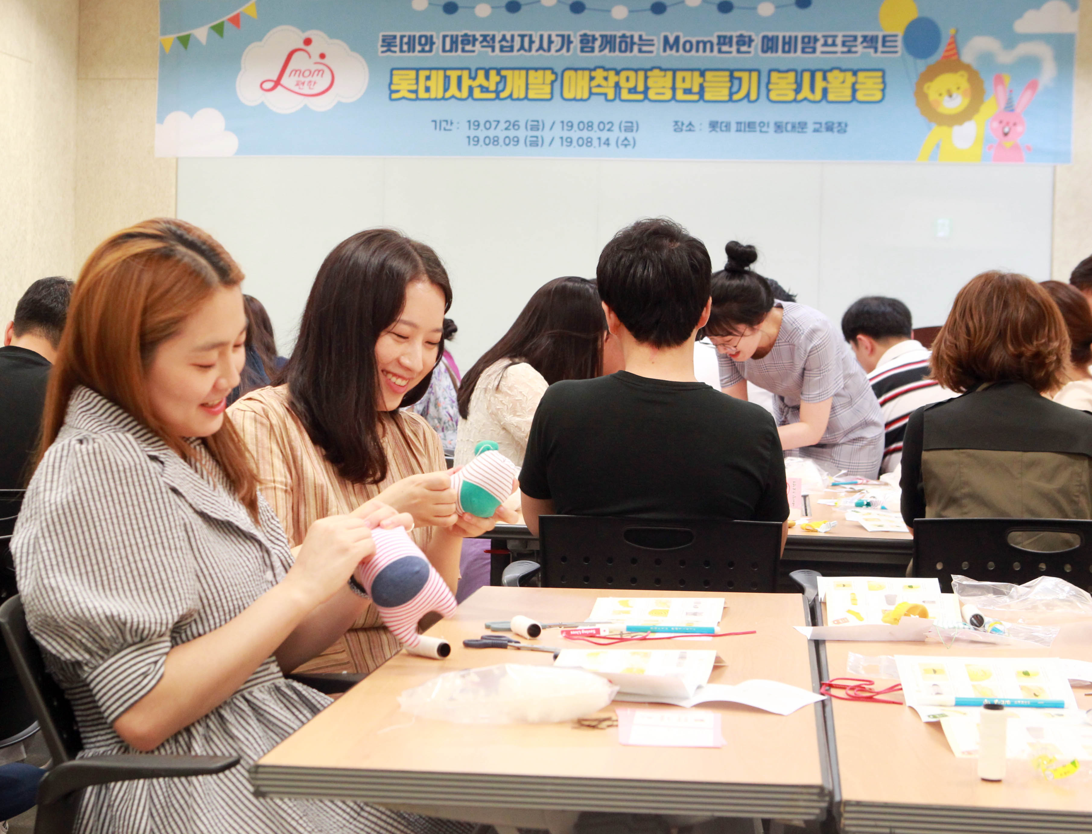 이번 봉사활동은 ‘롯데 mom편한 예비맘 프로젝트’의 일환으로 진행되고 있다. 이 CSV 프로젝트는 롯데와 대한적십자사가 함께 산모들에게 육아물품과 산모교육을 지원하는 사회공헌 사업이다. 임직원들이 만든 애착인형은 육아물품과 함께 산모들에게 전달될 예정이다.