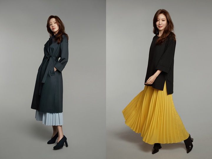 세련된 가을 패션을 연출하고 싶다면 배우 김아중의 새로운 ‘엣지’ 화보를 눈여겨보자. 스타일리스트 한혜연의 패션 바이블 브랜드 ‘엣지’의 19FW 화보에서 김아중은 가을 분위기로 물든 다양한 스타일링을 선보였다. 클래식한 네이비 컬러의 트렌치코트와 플리츠스커트를 활용해 페미닌하면서도 모던한 무드를 완성했고, 또 다른 화보에서는 블랙 티셔츠와 옐로 컬러의 맥시 플리츠스커트를 착용하며 고급스러우면서도 사랑스러운 매력을 드러냈다.