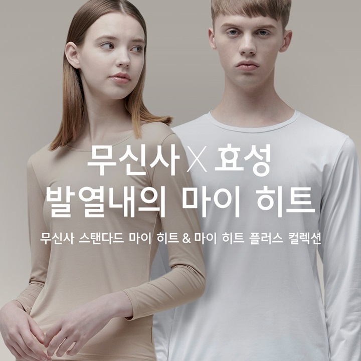 국내 발열내의 시장 공략을 위해 효성과 함께 올 하반기부터 출시한 ‘마이 히트’에 대한 기대감도 높다. 효성이 개발한 ‘에어로히트 익스트림’은 빛 에너지를 열 에너지로 전환, 방출하면서 원단과 피부 사이의 온도를 높이는 기능성 소재로 발열 효과가 뛰어나다. 또한 흡한속건 기능도 탁월해 쾌적한 착용감을 자랑한다. 신축성이 우수한 소재를 적용하고 약기모 가공을 하여 몸에 밀착되어 부드럽게 감싸는 슬림한 핏을 연출할 수 있으며 활동성이 좋다.