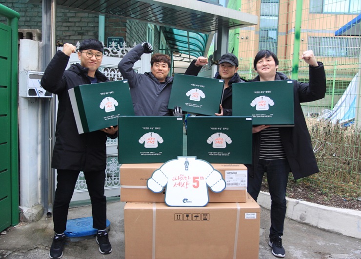 또한 올해 따뜻한 세상 캠페인 대표 선행자로 선정된 ‘진짜파스타’ 오인태 사장과의 인연을 단순 캠페인 사례자로 끝내지 않고 오인태 사장이 후원하는 (사)한국불우청소년선도회에 네파가 연말 맞이로 따뜻한 겨울 다운자켓 ‘어썸다운’을 기부하며 의미를 더했다. 네파는 키즈 브랜드 전속모델 나하은이 직접 디자인에 참여해 화제가 되었던 ‘어썸다운’ 총 100장을 (사)한국불우청소년선도회에 전달, 약 3천만원 상당의 기부를 진행했다.
