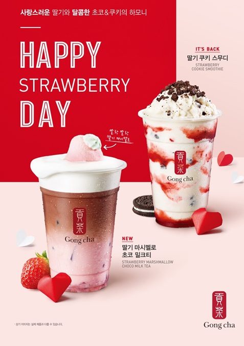 글로벌 티(Tea) 음료 전문 브랜드 공차코리아가 밸런타인데이를 맞이해 향긋한 밀크티에 밀크폼, 마시멜로, 쿠키를 더한 시즌 한정 ‘딸기 스페셜 메뉴 2종’을 출시한다고 밝혔다.