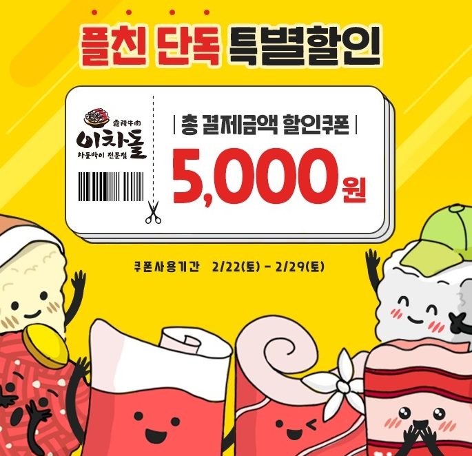 소고기 전문 프랜차이즈 ㈜이차돌이 2월 22일부터 일주일간 이차돌위크를 진행하면서 약 7만 명의 카카오톡 플러스 친구에게 특별한 할인 혜택을 제공한다.