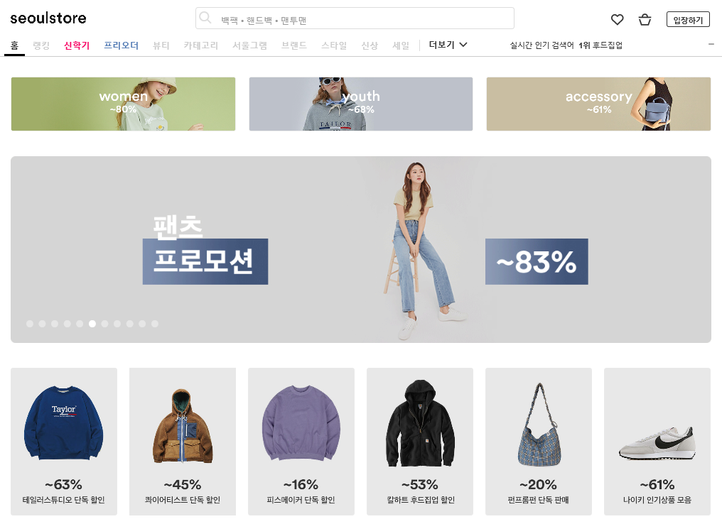 사이트 방문 시점에 소비자들이 많이 찾는 베스트 제품 카테고리 위주를 상단에 노출시켰으며, 카테고리 세분화를 통해 소비자들이 원하는 아이템을 손쉽게 검색해 확인할 수 있도록 했다. 또한 기획전 페이지 상단에 서울스토어가 추천하는 아이템 위주로 노출시켜 제품 선택을 망설이는 고객들의 고민을 덜어주었다.