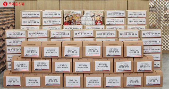 롯데홈쇼핑은 지난 2015년부터 본사가 위치한 영등포 지역 내 소외계층에게 정기적으로 반찬을 만들어 전달하는 ‘희망수라간’ 활동을 지속해 오고 있다. 그러나 코로나19 확산으로 단체활동과 대면접촉으로 인한 감염을 방지하기 위해 지난달부터 활동을 중단한 상태다. 이에 감염 예방 및 균형 있는 영양 공급이 시급한 취약계층의 일상생활을 지원하기 위해 손 세정제와 즉석국, 카레, 장조림 등 간편식품으로 구성한 생활용품 키트를 직접 제작했다.