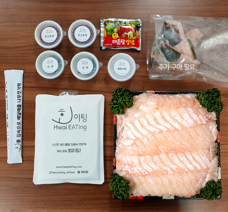회(hwoi)+먹다(eating)의 합성어로 만들어진 회이팅은 수산물에 대한 올바른 정보를 제공하고 소비자에게 안전한 수산물을 신속하게 제공하고자 만들어졌다. 회이팅은 온라인을 기반으로 집에서 엄선된 고품질의 회를 편리하게 먹을 수 있도록 하고 있다. 직접 상품을 관리하고 소비자에게 전달하기 때문에 상품 퀄리티 유지가 가능하다. 맛있고 좋은 회를 공수하는 비결은 공동구매다. 주로 노량진수산시장의 새벽경매를 통해 원물을 발 빠르게 조달하고 있다.
