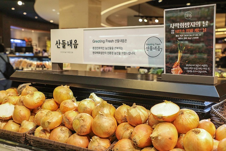 현대그린푸드가 단체급식에 사용하는 양파를 전량 ‘저탄소 인증’ 양파로 대체한 데 이어, 사막화방지의 날 6월17일을 맞아 유통업계에서 처음으로 ‘저탄소 인증’을 받은 양파 판매에 나선다.