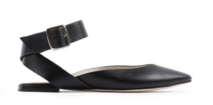 클래식 댄스 슈즈에 와이드 앵클 스트랩과 메탈 버클이 더해져 락시크 감성을 더한 것이 특징이며, 여성스러우면서도 모던하고 영한 무드를 자아낸다.