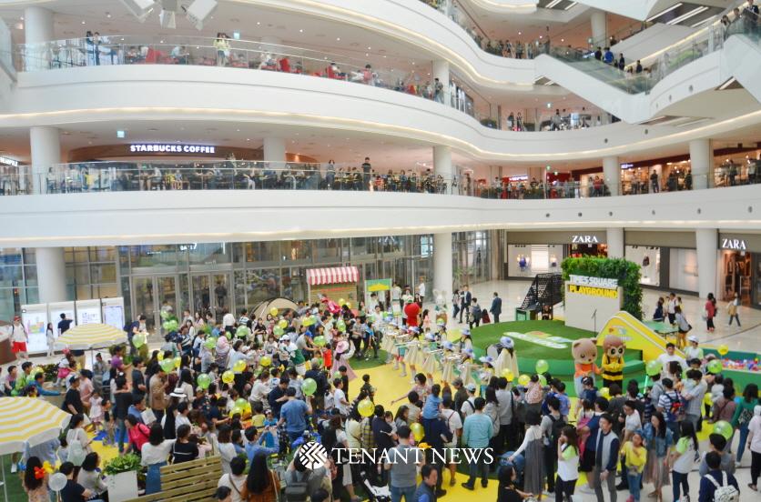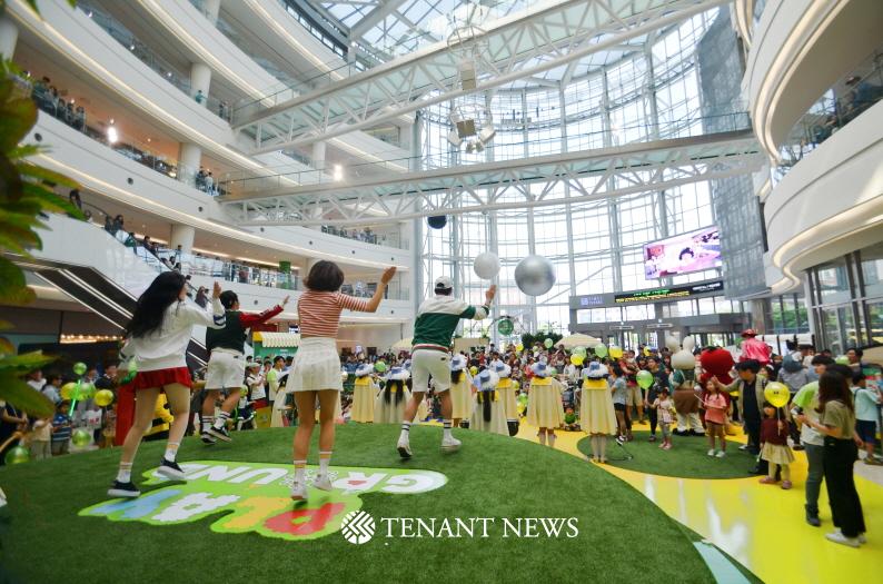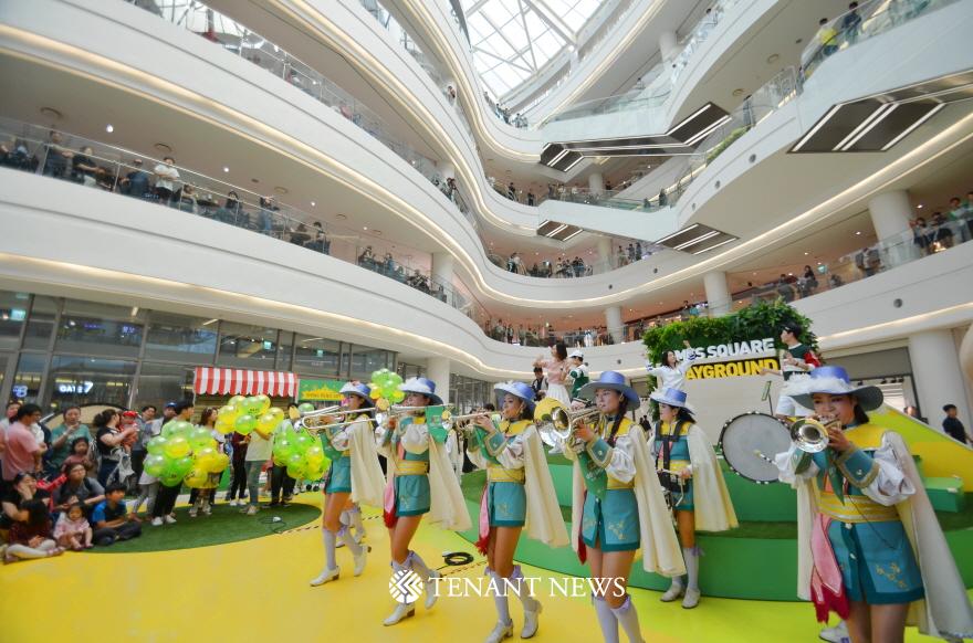 이번 ‘플레이 그린 퍼레이드’는 아름다운 숲 속 요정을 콘셉으로 한 퍼포먼스 팀이 등장해 도심 속 피크닉 파크로 꾸며진 1층 아트리움과 타임스퀘어 공간 곳곳을 누비며 화려한 축제 분위기를 전했다. 신나는 어린이 동요를 연주하는 고적대를 중심으로 유쾌한 동물 캐릭터들과 키다리 퍼포머, 댄스 팀이 고객들에게 사탕과 풍선을 나눠주며 즐거움을 선사했다.