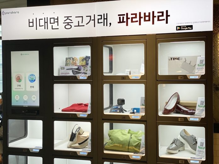 ‘파라바라’ 리셀링 박스는 판매자가 모바일 앱을 통해 상품 사진과 원하는 가격을 입력하고 투명 사물함 박스 안에 넣어두면 구매자는 본인이 원하는 상품이 있으면 언제든지 원하는 시간에 방문하여 직접 상품을 보고 구매하여 가져 갈 수 있다.