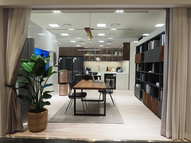 욕실은 호텔처럼 깔끔하게 관리할 수 있도록 유리 부스로 샤워 공간을 분리시켰다. 또한 벽면과 바닥을 우드 소재를 써 따뜻한 분위기도 연출했다. 특히 언택트 소비 시대에 맞춰 모든 상품에는 간략한 설명과 가격이 적혀있어 스스로 가격 확인이 가능하다. 고객들이 둘러보며 정보를 즉시 확인할 수 있고 본 매장에서 구매 상담을 이어갈 수 있다.
