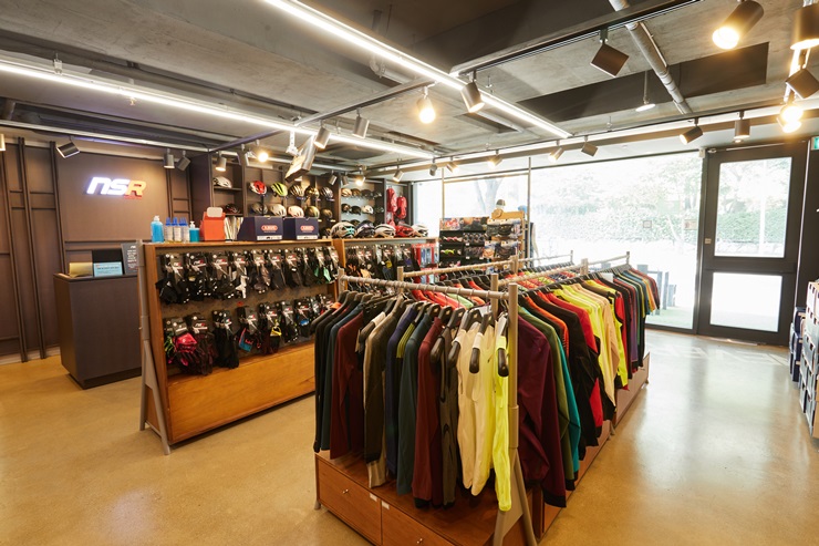 NSR 천호점은 작년 9월 말에 오픈했다. 자전거 거치대는 물론, 인조 잔디밭에 라이더들이 잠시 쉬었다 갈 수 있는 공간을 자랑하는 깔끔한 외관이 시선을 끈다. 매장 안에 들어서니 정말 다양한 자전거 의류와 헬멧, 고글, 신발 등으로 볼거리가 풍성하다. 취급하는 브랜드도 다양해서 NSR 자체 제작한 의류 및 용품 외에도 HJC, KASK헬멧을 비롯해 100% 스피드 크래프트, RoKA, WTD, UVEX 등의 고글도 만나볼 수 있다. 매장 운영 시간은 매일 오전 10시부터 오후 8시 30분까지이다.