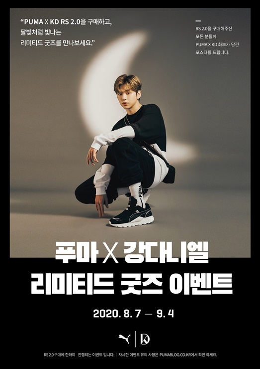한편, 푸마는 ‘RS 2.0‘ 런칭을 기념해 푸마X강다니엘 리미티드 굿즈 이벤트를 준비했다. ‘RS 2.0‘ 구매 고객에 한해 스크래치 카드를 증정하며, 스크래치 카드를 긁으면 바로 굿즈 당첨 여부를 확인할 수 있다. 해당 이벤트는 8월7일부터 9월4일까지 4주간 진행된다.