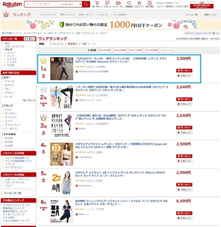 브랜드엑스코퍼레이션이 전개하는 액티브웨어 브랜드 젝시믹스(이수연, 강민준 각자대표)가 일본 최대 온라인 쇼핑몰 라쿠텐 입점 3개월만에 ‘요가웨어 카테고리’ 1위에 등극했다고 8월 31일 밝혔다. 라쿠텐은 연간 거래액 100조원, 회원수 1억명에 달하는 일본의 대표 전자상거래 기업으로 아마존, 야후쇼핑과 함께 3대 쇼핑몰로 불리우고 있다.