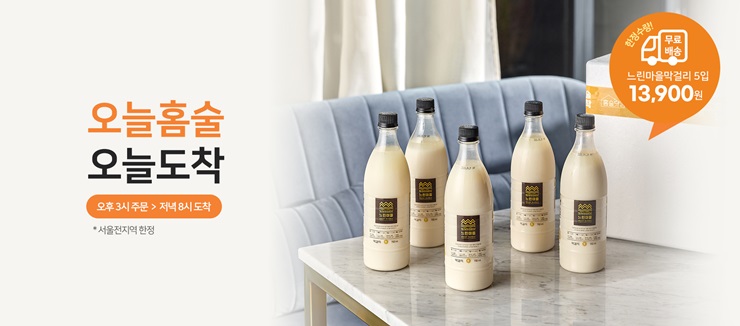 배상면주가는 안정적인 오늘홈술 서비스 제공을 위해 지난 9월 말부터 대표 제품인 ‘느린마을막걸리’부터 오늘 배송 서비스를 시범적으로 운영하고 있다.
