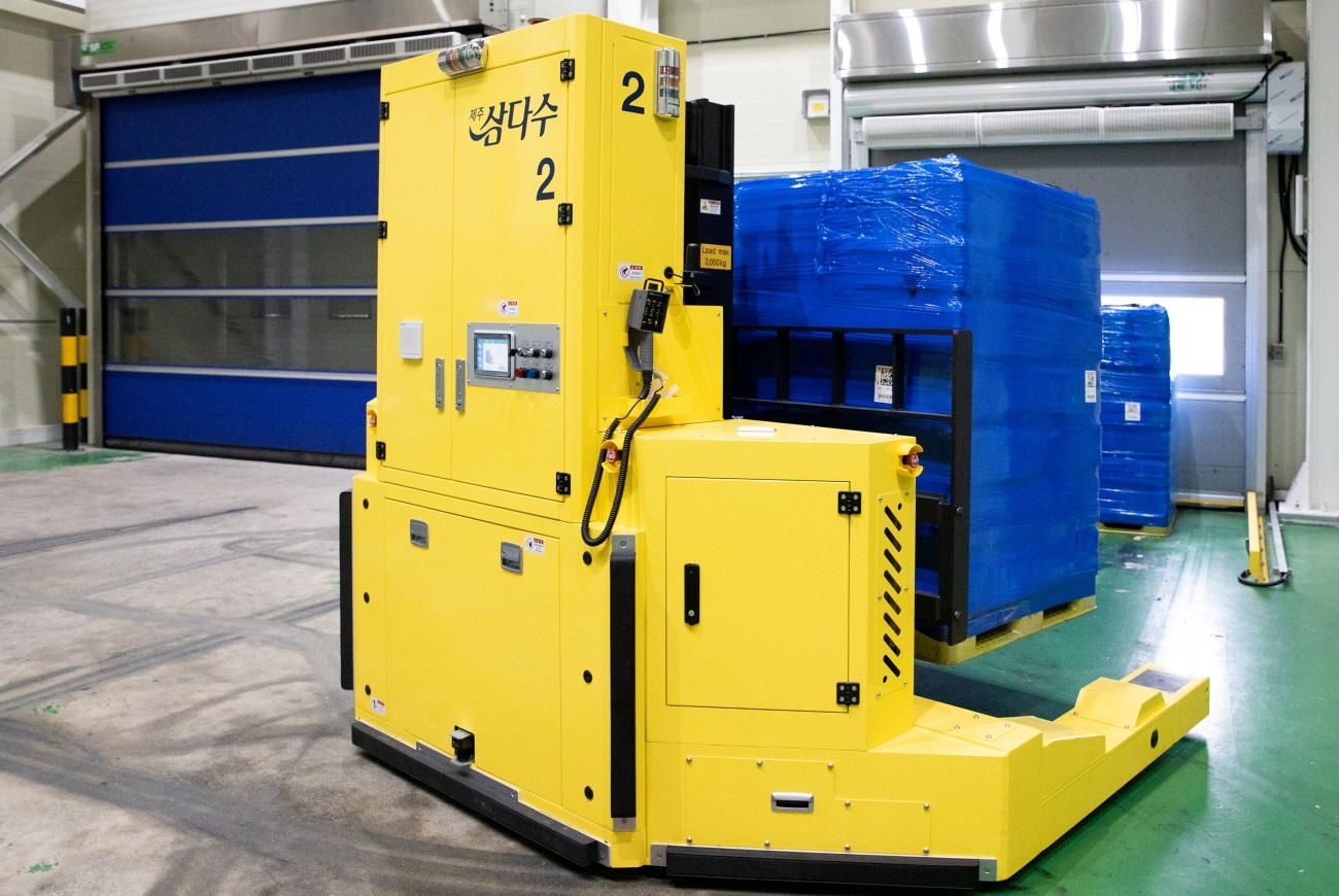 자동 충전 시스템과 레이저 유도방식이 적용된 무인 지게차 2대가 전용 동선을 따라 500mL 삼다수 완제품과 빈 팔레트를 입ㆍ출고함으로써 업무 효율성 증대 및 작업자의 안전사고를 사전 차단할 수 있는 것이 특징이다. 외부 이물질이 공장 내부에 혼입되는 것을 막을 수 있어 제품 품질 개선에도 기여하고 있다.