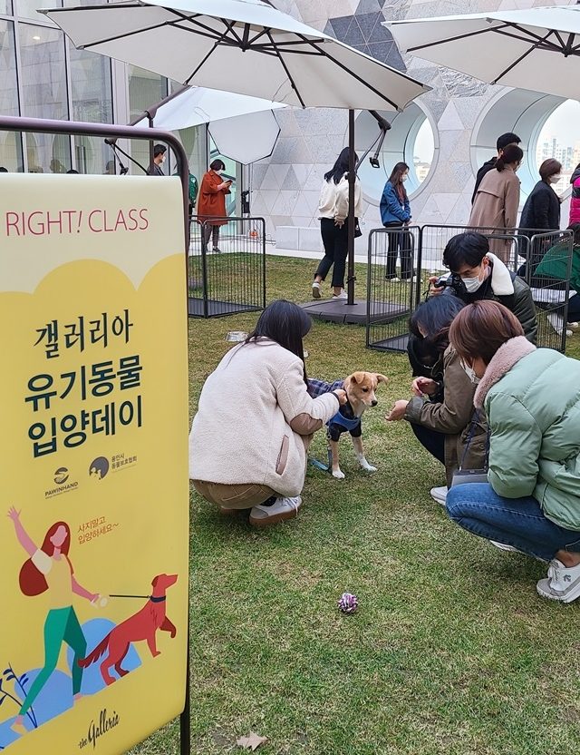갤러리아는 지난 6월 인천 계양산 불법 개농장에서 견공 12마리를 구조했다. 그 중 홍역으로 사망한 5마리를 제외한 7마리를 치료 및 보호하다 8월부터 지난 2일까지 순차적으로 해외 입양을 통해 죽음의 문턱에서 안전하고 새로운 삶으로 극적 인도했다. 또한 지난달 25일에는 백화점 최초로 갤러리아 광교에서 ‘유기동물 입양 데이’ 행사를 진행했다.