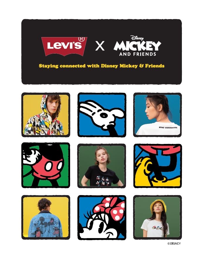국가과 성별, 나이를 넘어 전 세계인들의 사랑을 받아온 캐릭커와 브랜드가 만나 이루어진 리바이스®X디즈니 미키앤프렌즈의 콜라보레이션 제품은 미키마우스와 그의 친구들인 미니마우스, 구피가 리바이스의 현대적 실루엣에 녹아 있으며, 각자 캐릭터와 브랜드 아이덴티티를 보여주면서도 그 안에 자연스러운 조화로움이 위트있게 어우러져 출시 전부터 그 열기가 뜨겁다.