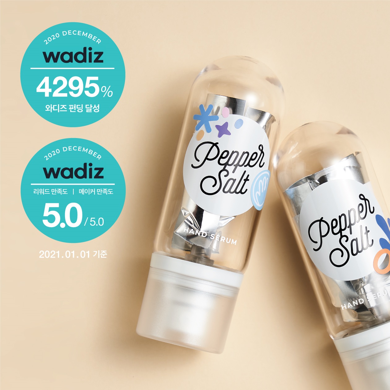 이러한 장점을 바탕으로 페퍼솔트 ‘핸드 세럼’은 지난달 와디즈 펀딩을 통해 달성률 4,295%를 기록, 많은 사람들의 기대를 받으며 성공적인 출발을 보였고, 펀딩 이후 제품 만족도 만점* 을 받아 앞으로의 활약이 더욱 기대된다.