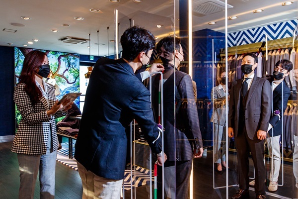 체형별 맞춤과 수선 서비스를 비대면으로 진행하기 위해 투명 플렉시 글라스 소재의 ‘세이프 스크린(Safe Screen)’도 매장에 도입했다.