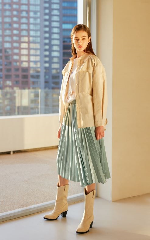 이번 S/S 시즌에서는 클래식 코드를 베이스로 우아하면서 경쾌한 스타일을 표현하였으며 가볍고 편안한 소재와 페이퍼리한 터치로 여성스러운 실루엣과 편안함을 강조하였다. 포멀하면서 시크한 무드의 트렌치코트와 블랙 팬츠를 매치해 세미포멀룩을 연출했으며 드라마틱 한 볼륨과 풍성한 실루엣의 플리츠스커트는 디자인부터 컬러, 소재까지 디테일한 디자인 포인트도 놓치지 않았다.