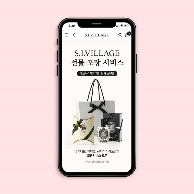 에스아이빌리지는 이달 27일부터 다음 달 16일까지 선물하기를 통해 가장 많이 판매된 향수 브랜드의 포장 서비스를 우선적으로 제공한다. 포장 서비스 대상은 ‘스몰 럭셔리’로 각광 받고 있는 니치 향수 브랜드 산타 마리아 노벨라, 딥티크, 바이레도의 대표 제품 44개로 향수, 디퓨저, 방향제, 핸드크림 등 다양하다.