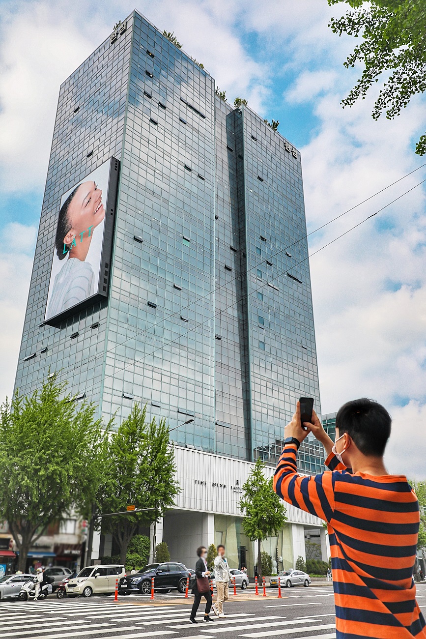 이번에 선보이는 디지털 사이니지의 총 면적은 225㎡(가로 11.25m, 세로 20m)로 한섬 청담 사옥 외벽에 세로형으로 설치됐다. 해상도(1,056 X 1,824 pixel)는 풀HD(FHD)급 고화질로 한 낮에도 선명한 영상을 볼 수 있다.