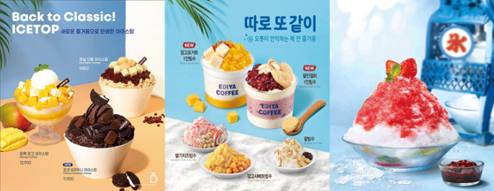 이디야커피는 사회적 거리 두기와 1인 가구 증가에 따른 ‘혼디족(혼자서 디저트를 먹는 사람들)’ 트렌드를 반영한 1인 빙수 2종을 출시했다. 우선, 팥인절미 1인 빙수는 아삭한 얼음을 섞은 연유 셔벗과 부드러운 아이스크림 위에 단팥을 토핑했다. 통팥, 고소한 인절미가 함께 어우러져 남녀노소 누구나 먹을 수 있다. 망고 요거트 1인빙수는 망고 샤베트와 함께 요거트 베이스의 아삭한 얼음과 상큼한 아이스크림, 치즈케익의 조화가 돋보이는 여름 메뉴다.