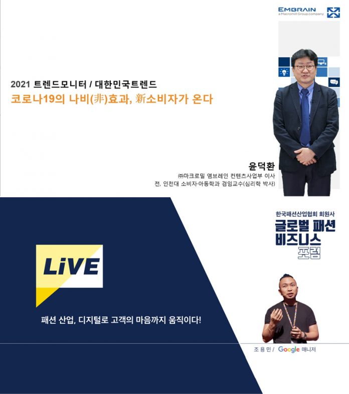 협회는 회원들에게 최신 경영 정보를 제공하기 위하여 온라인 ‘글로벌패션비즈니스포럼’을 지난 3월에 이어 5월에도 개최했다. 과거 회원사 조찬 형태로 개최되어 오던 포럼을 비대면으로 전환한 것인데 점차 회원들의 관심이 높아지고 있다. 향후 분기별로 E-commerce, 디지털 DX 등 회원들의 비즈니스 생태계 변화 적응에 도움이 되는 주제로 정기적인 온라인 포럼을 기획중이다.
