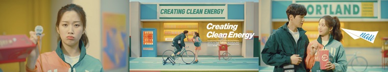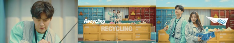 그리고 각 영상에서 김선호와 문가영은 낚시대를 이용해 분리수거장의 페트병에 담긴 리사이클 티셔츠를 건지고, 폐 페트병에 조약돌을 넣어 볼링 게임을 즐기고, 자전거 발전기를 돌리며 팝콘을 만들어내는 등 포틀랜드 캠퍼스 배경으로 친환경 아웃도어 놀이를 즐긴다.