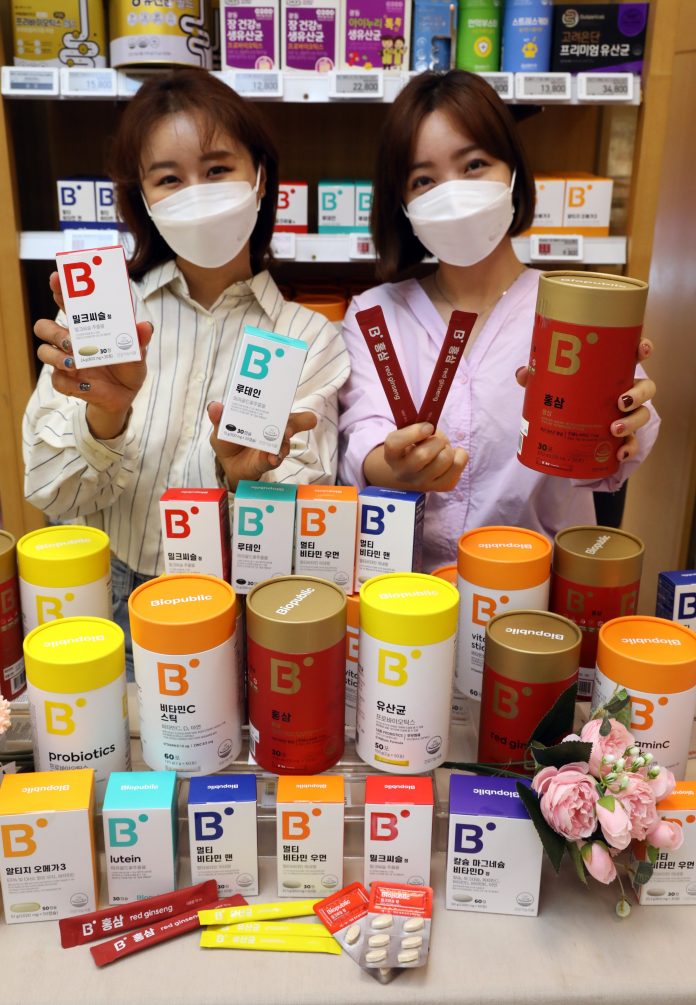 ‘Biopublic’은 프로바이오틱스, 비타민C스틱, rTG오메가3, 홍삼스틱, 루테인, 칼마디(칼슘, 마그네슘, 비타민D), 밀크시슬, 멀티비타민 남성용, 여성용 등 총 9개 품목이다.