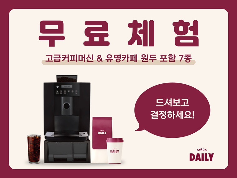 오피스 사업자라면 누구나 원두데일리 사이트 및 전화를 통해 응모 가능하며, 오는 8월 말까지 진행된다. 체험을 신청할 경우 간단한 시음회와 함께 원두데일리 전용 커피머신 설치, 원두 7종 증정 등의 혜택을 받을 수 있다.