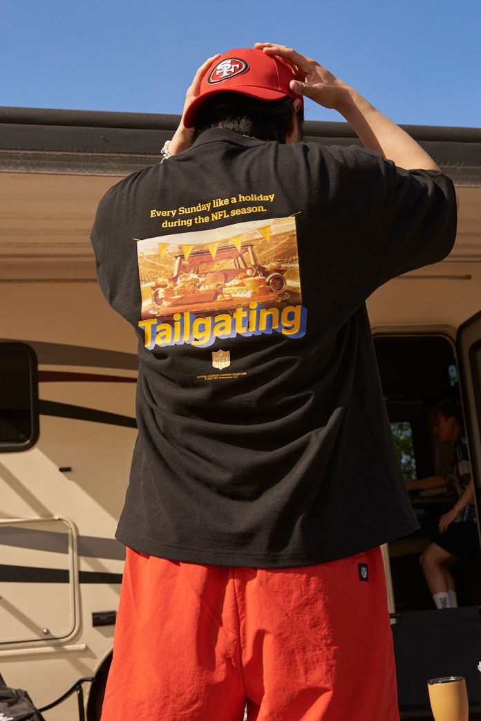 이번 시즌 테일게이팅 컬렉션으로는 빈티지한 색감이 돋보이는 티셔츠를 선보인다. 제품은 티셔츠 앞면에 엔에프엘 브랜드 로고가 새겨진 라인과 티셔츠 뒷면에 테일게이팅 그래픽 이미지가 적용된 라인으로 나뉘며, MustardㆍSunburn BrownㆍEnsign Blue 등의 빈티지한 색감을 중심으로 레트로 감성을 표현했다.