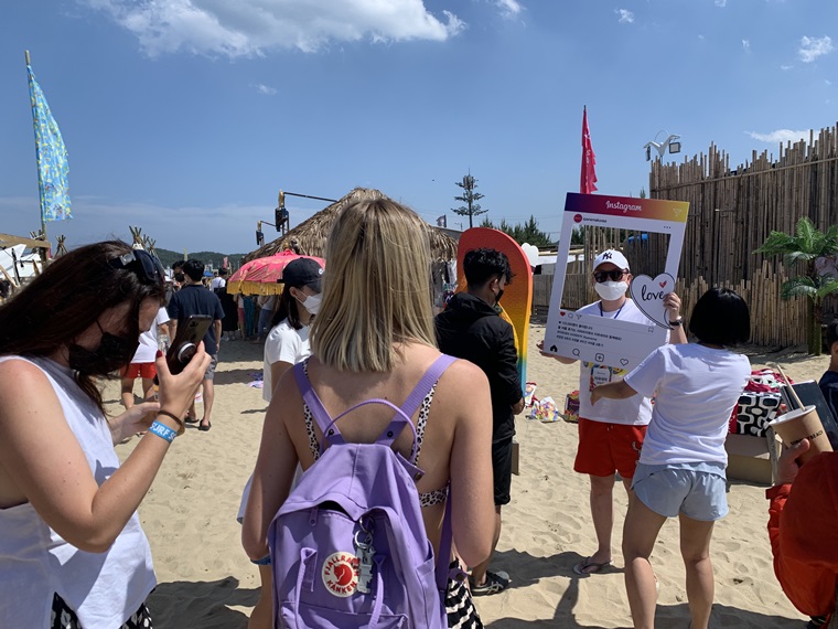 이파네마의 대형 플립플랍 조형물은 브랜드 홍보효과 외에 화사한 레인보우 컬러로 제작해 시선을 사로잡아 서피비치를 찾는 사람들에게 포토존으로도 인기다.