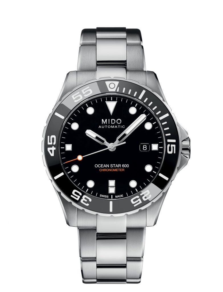새롭게 선보이는 미도의 ‘오션스타 600 크로노미터’는 최고의 타임키핑 기능을 통합한 탁월한 다이빙 워치로서 견고한 스테인리스 스틸 케이스는 폴리싱 처리와 새틴 마감 처리된 표면으로 인해 한층 더 매혹적인 빛을 연출한다.