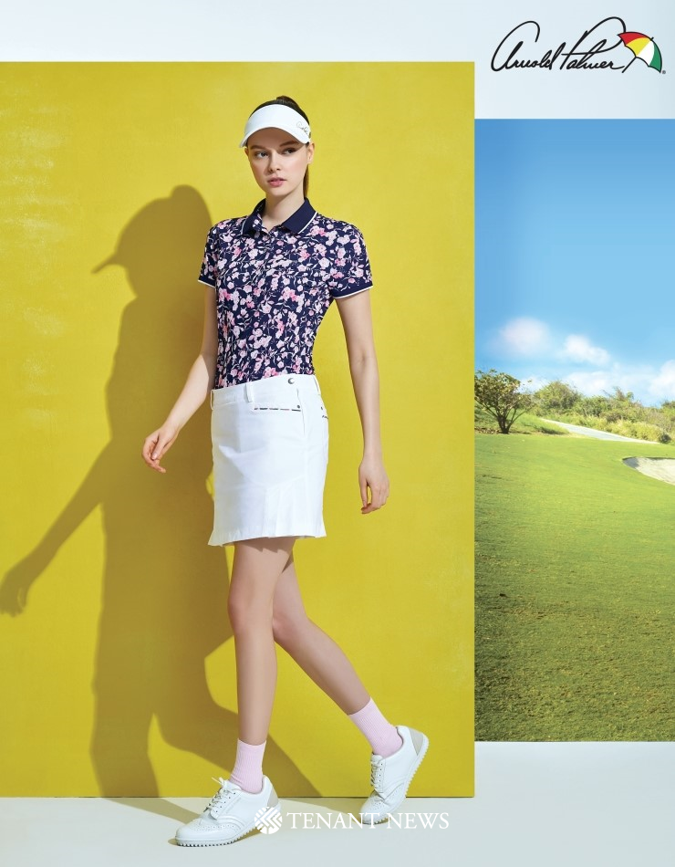아놀드파마가 화사한 플라워 패턴의 골프웨어를 제안한다 DIR(대표 박준식)에서 전개하는 아놀드파마가 2018 S/S 시즌 ‘마운틴로렐(Mountain-Laurel)’ 시리즈를 출시했다. ‘마운틴로렐’ 시리즈는 골퍼 아놀드파마가 나고 자란 미국 동부 ‘펜실베니아’ 지역의 대표 꽃에서 영감을 받은 시리즈로 활짝 핀 꽃은 브랜드의 로고인 우산모양을 상징한다.