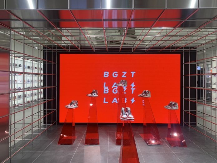 더현대서울 브그즈트 랩의 약 2배 규모인 브그즈트 랩 2호점은 포디엄, 스니커즈월, 풋셀존, 조던존 등 다양한 공간 구성이 특징이다.