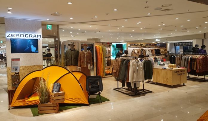 제로그램 6번째 매장인 롯데백화점 잠실점은 백패킹 텐트로 시작하는 다양한 백패깅과 캠핑 용품, 의류를 한 곳에서 쇼핑할 수 있는 매장이다.