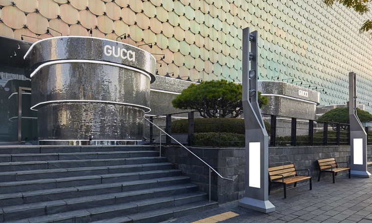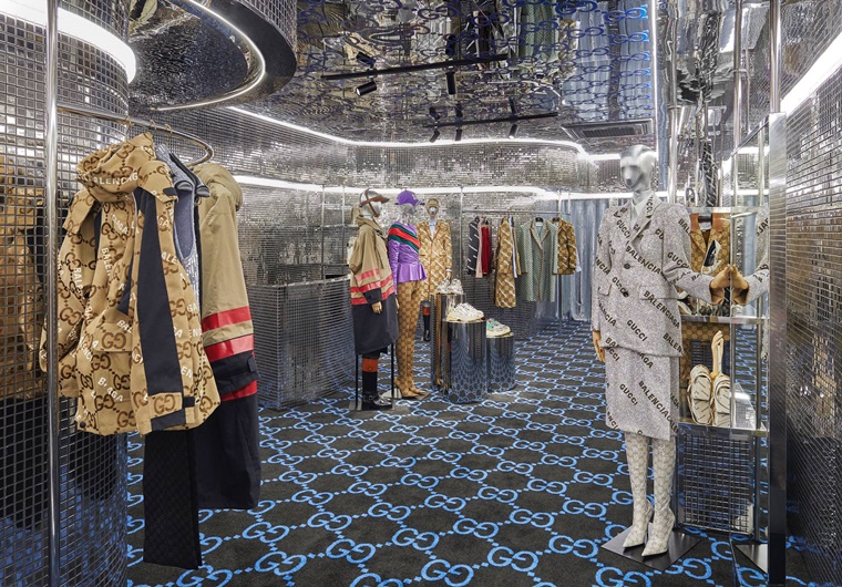 갤러리아명품관 웨스트 외부에 마련된 이번 ‘해커 프로젝트’ 팝업 스토어는 메탈 모자이크 타일로 만들어진 초현대적인 공간을 연상케끔 연출했고, 블랙 카페트에 프린트된 블루 컬러의 구찌 대형 GG패턴으로 바닥과 천장을 둘렀다.