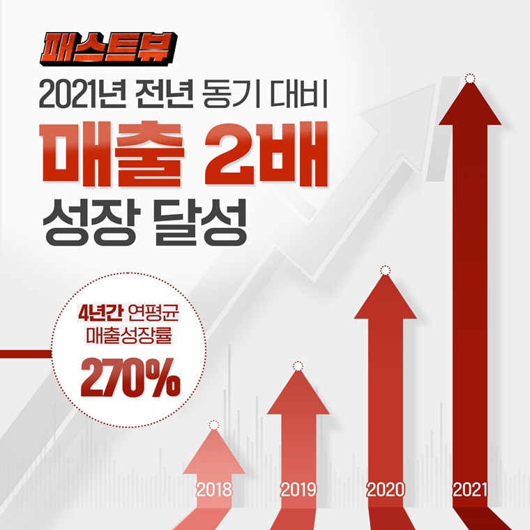 Home미분류패스트뷰, 2021년 매출 전년대비 2배 성장 '4년간 연평균 270% 이상 성장'