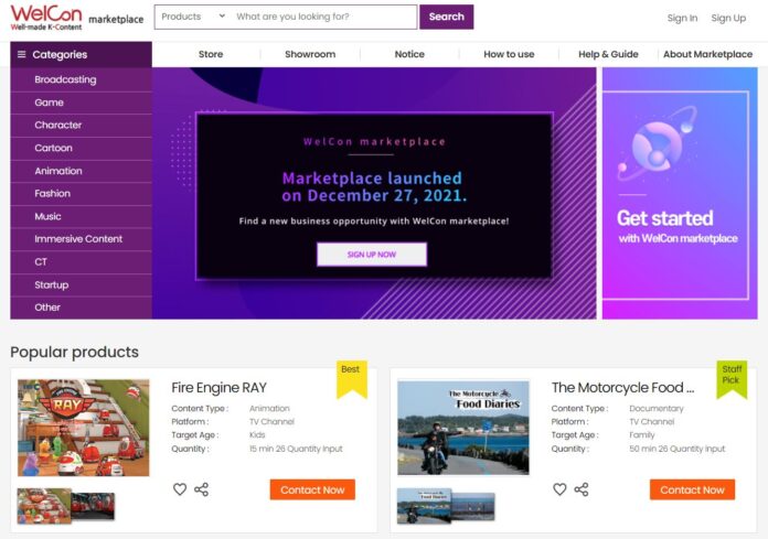 문화체육관광부(장관 황희)와 한국콘텐츠진흥원(원장 조현래, 이하 콘진원)은 신한류를 이끌 K-콘텐츠의 해외진출을 지원하기 위해 자체 콘텐츠수출마케팅플랫폼 ‘웰콘(WelCon)’에 온라인 B2B ‘마켓플레이스’ 기능을 장착하고 본격 서비스에 나섰다.