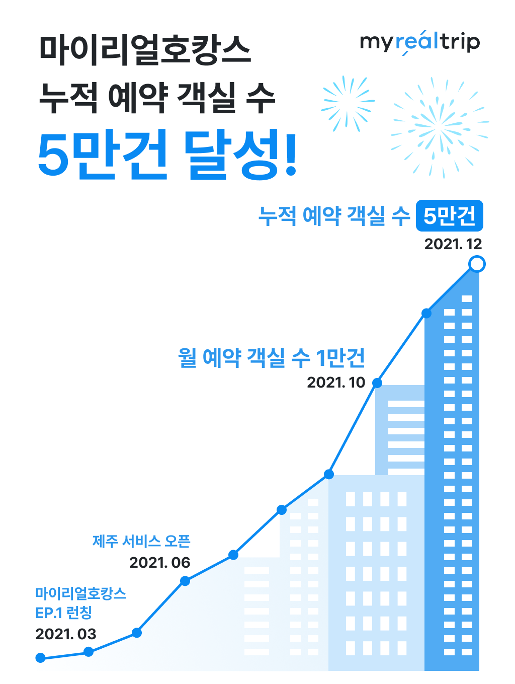 여행 슈퍼앱을 서비스하는 (주)마이리얼트립(대표 이동건)이 지난해 3월부터 서비스하는 마이리얼호캉스의 누적 예약 객실수가 5만 건을 돌파했다고 밝혔다.