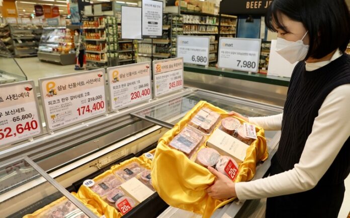 축산에서는 ‘피코크 횡성축협한우(1++등급)’ 프리미엄 세트를 30만원대부터 선보이며, ‘김해축협 포갈비(1등급)’, ‘호주산 육포세트(500g)’ 등 가성비 상품도 다양하게 준비했다.