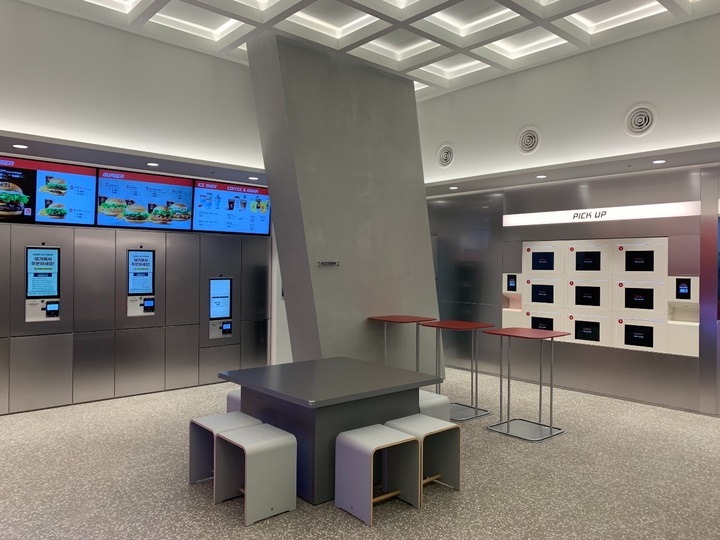 무인 픽업 시스템을 적용한 스마트 픽업존과 추가 소스류 구매를 위한 자판기까지 배치해 기존 버거 매장과 차별화된 브랜드 경험을 할 수 있다. 취식 공간에는 기존 롯데리아 매장 인테리어 틀에서 탈피한 계단식 좌석과 대형 미디어 파사드의 멀티비전을 설치해 시∙공간 특화 존을 마련했다.