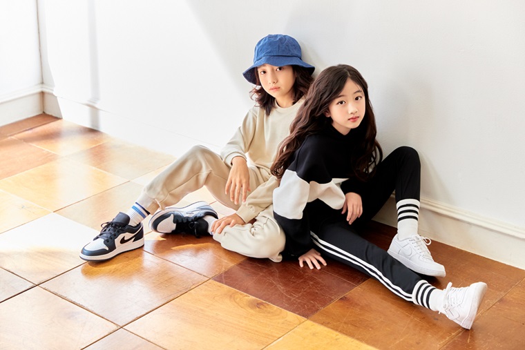 스웻 셋업의 경우 기존 핏에 볼륨감 있는 퍼프 소매로 페미닌한 무드를 살렸으며 여아 전용 조거 핏과 플리츠 스커트를 구성해 스타일에 있어서도 다양한 활용이 가능하다.