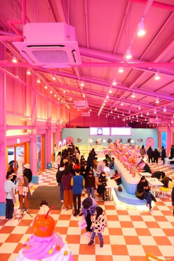 국내 최대 디저트 타운 말똥도넛은, 비비드한 컬러와 익살맞은 메인 캐릭터를 닮은 다채롭고 유니크한 공간이다.