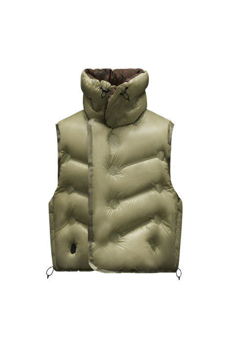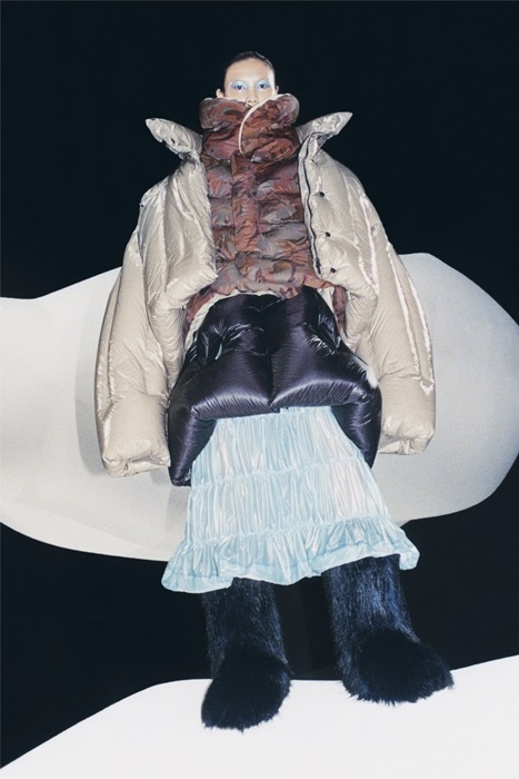 기능성과 볼륨감에 특화된 그는 몽클레르와 가장 잘 어울리는 디자이너중의 하나이며 그와의 컬렉션은 불규칙한 퀼팅의 패딩을 통해 미래적인 미학과 몽클레르 특유의 기술력을 결합해낸다.