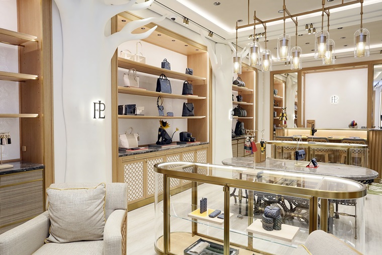 리뉴얼한 포레르빠쥬 웨스트 부티크는 한층 업그레이드된 럭셔리함으로 브랜드의 미래 비전을 담았다. 외관은 반짝이는 갑옷 사슬을 연상시키는 에카이유(비늘) 문양의 골드 파사드로 꾸몄으며, 매장 내부는 벽난로 장식의 거실(salon)과 바(Bar)로 구성하였다.